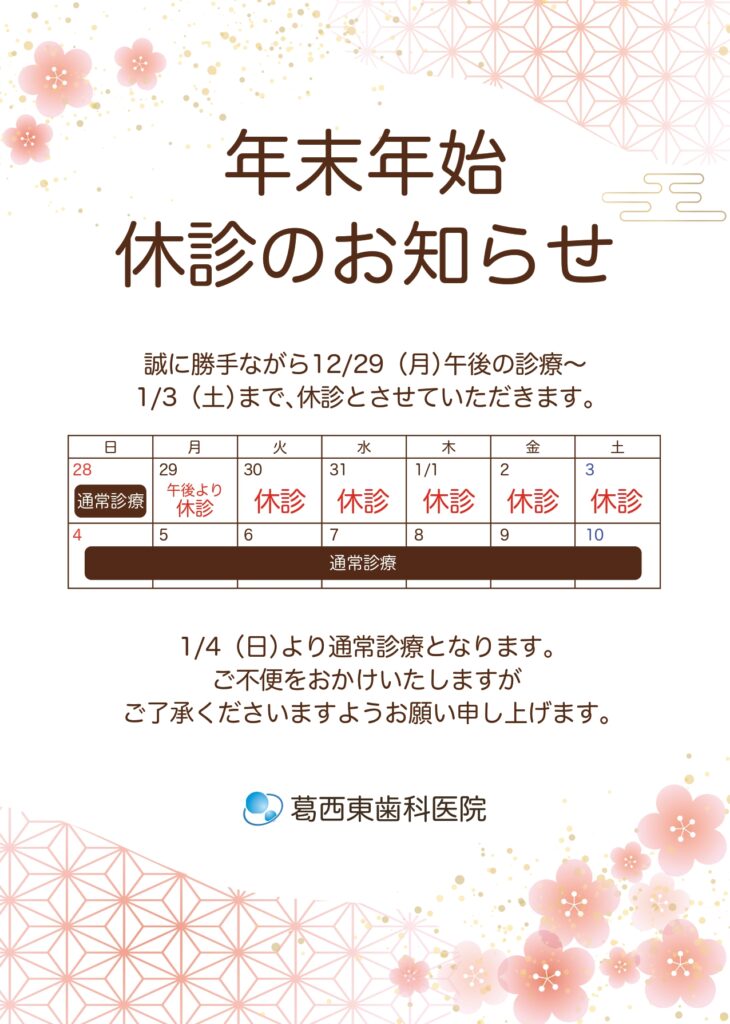 年末年始休診のお知らせ